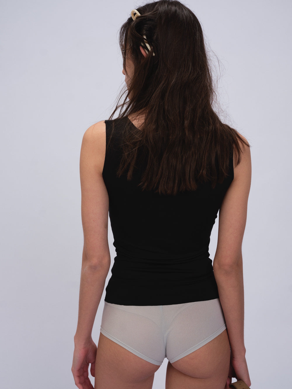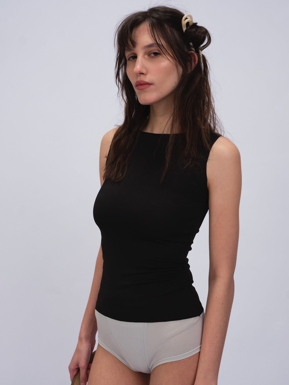 Musculosa alta torsion italiana con terminacion al corte entallada.